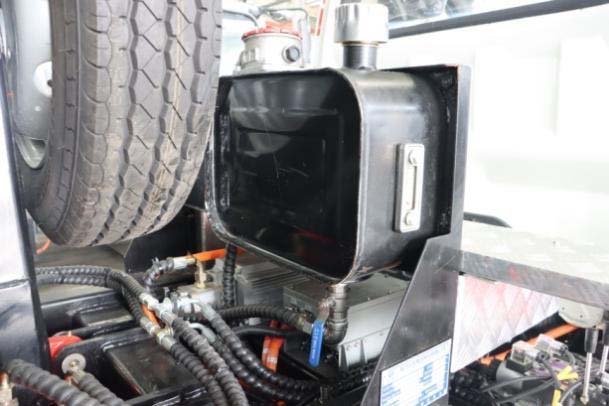 一、底盤配置: 采用東風EQ1320GTZEVJ車身,配置玉柴TZ388XSSFE01發(fā)動機360馬力,國六排放標準,軸距1850+3550+1350(mm),整備質(zhì)量14.15噸,額定載質(zhì)量17.72噸,五擋變速箱,帶動力轉(zhuǎn)向,帶原廠空調(diào),隨底盤選裝電池護罩,輪輞,踏板;側(cè)面防護裝置材料為鋁合金,與底盤縱梁采用 焊接連接;后下部防護裝置材料為 Q235,與車架螺栓連接,截面尺寸:120×60mm,離地高 度為 445mm;動力蓄電池種類:磷酸鐵鋰蓄電池,生產(chǎn)企業(yè):寧德時代新能源科技股份有 限公司;驅(qū)動電機類型:永磁同步電機,驅(qū)動電機功率:360kW,生產(chǎn)企業(yè):陜西法士特齒輪 有限責任公司;ABS 型號:CM4XL-4S/4M;ABS 生產(chǎn)企業(yè):廣州瑞立科密汽車電子股份有限 公司;該車安裝具有衛(wèi)星定位功能的行駛記錄儀;專用功能及裝置該車上黃牌,城區(qū)道路請注意限行標識。