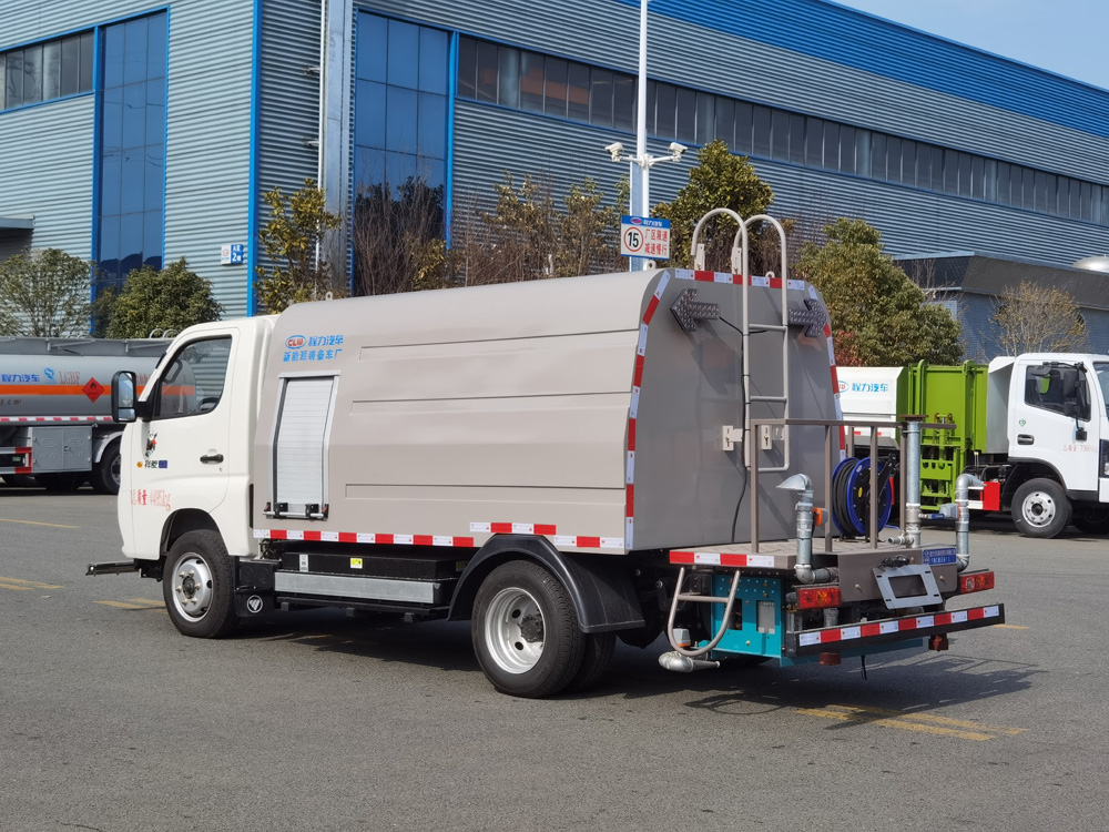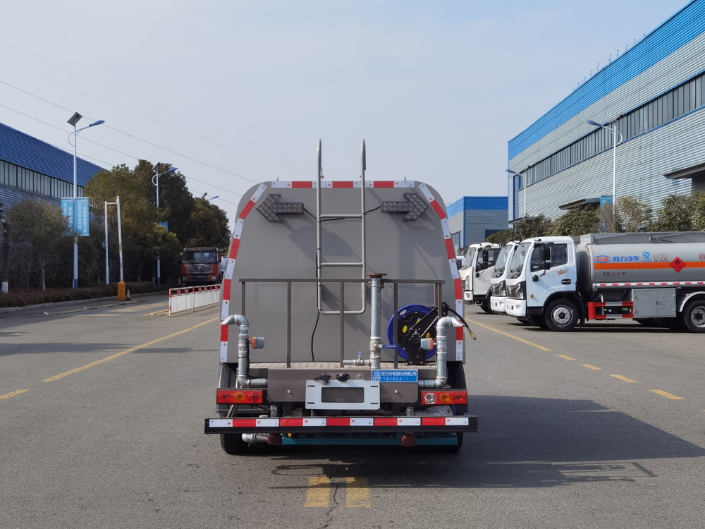 四、其他說明: 整車具備前噴架噴水、點噴噴水、左右角噴 ,手持噴槍等多種作業功能 ,其中前噴架和點噴可上下左右 調節 ,均可單獨或組合使用 ,罐體有效容積 3m3 , 同級別行業最大; 本產品即可用于高壓清洗路面、 路緣, 進行噴霧降塵, 調節空氣濕度, 改善空氣質量, 并能用高壓 水槍清洗路標、 廣告牌等。車輛不僅用于城市狹窄路段、步行道路的日常作業,還可用于車輛保潔