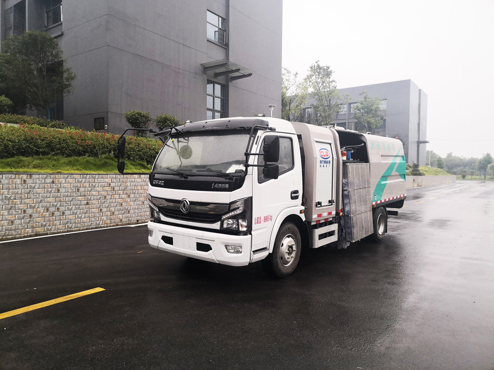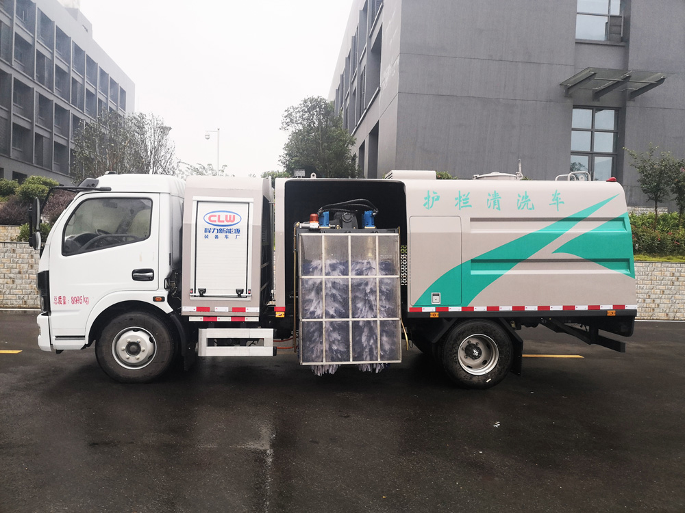 四、其他說明: 東風(fēng)純電動護(hù)欄清洗車,是在標(biāo)準(zhǔn)純電動二類底盤的基礎(chǔ)上,加裝沖洗系統(tǒng)、馬達(dá),清洗刷,由機(jī)械、液壓、電器三部分合為一體的專用沖洗作業(yè)車。本車具有獨(dú)立的水路系統(tǒng),為清洗車工作提供壓力水源。其工作原理是:利用水泵產(chǎn)生的水,經(jīng)噴水架的噴嘴噴出,利用電機(jī)馬達(dá)帶動清洗刷,能將護(hù)欄的陳舊污漬清洗干凈;使用高壓噴槍還可清洗路標(biāo)、廣告牌、高架路等;噴霧系統(tǒng)具有強(qiáng)大的噴霧降塵、噴撒空氣消毒劑及調(diào)節(jié)空氣濕度功能。