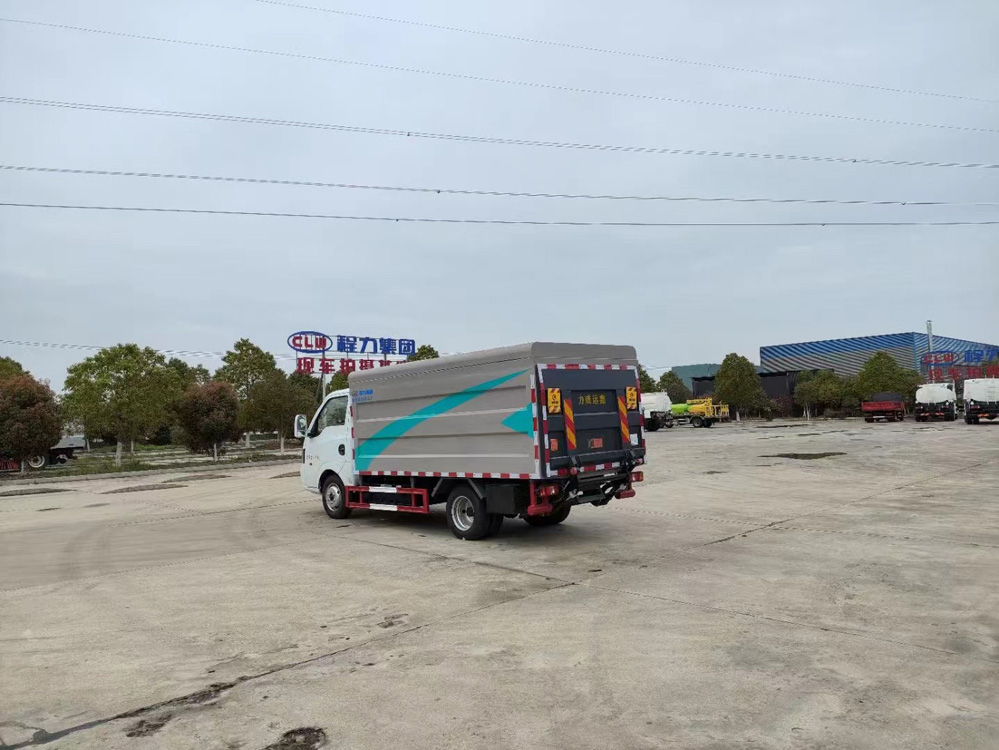 四、其他說明: 箱體采用開放式結構,可裝載12個240L 標準垃圾桶,符合城市垃圾桶換桶的收集模式。 ? ? ?能夠確保垃圾不落地、同時防止拋灑滴漏等現象,有效解決垃圾運輸過程中的二次污染問題。箱體尾部安裝液壓尾板,配力威遠鑫500KG液壓尾板,具有升降功能,滿足桶裝作業要求;