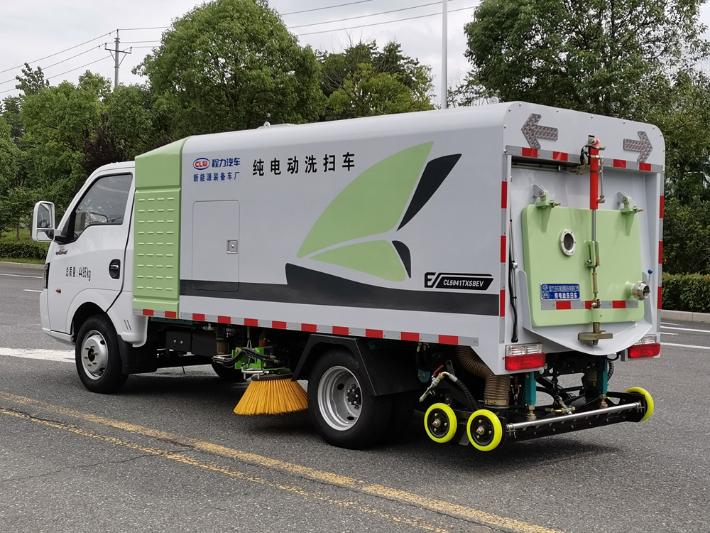 四、其他說明: 東風途逸純電動洗掃車是我公司自行設計開發、具有自主知識產權、國際領先技術水平的新一代路面、路沿清洗、清掃及噴霧降塵的專用設備。該款洗掃車結合了掃路車及高壓清洗車的功能特點,并解決了吸塵車無法在城市道路上清洗路沿的短板,在作業時利用掃刷將地面垃圾掃向車內側,路面的頑固附著物由高壓噴水桿噴出的水流沖起,再由吸盤吸入垃圾箱儲存.具有綠色環保、功能齊全、設計合理、能耗低、清洗范圍廣、使用壽命長等特點。