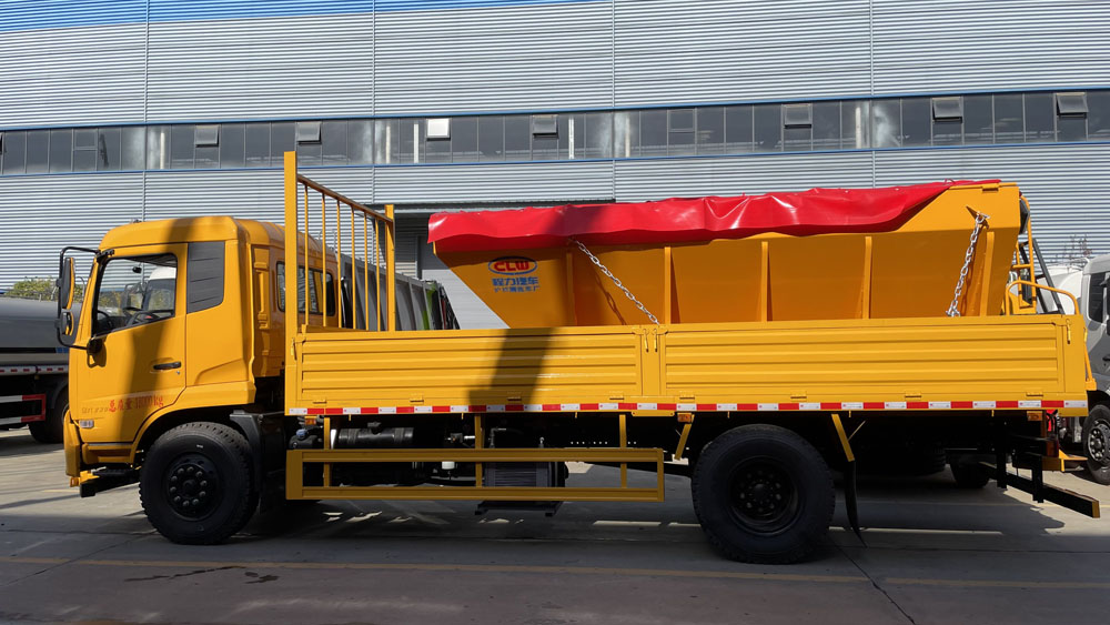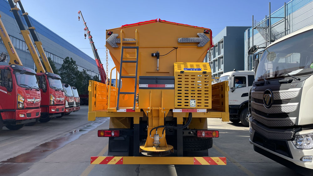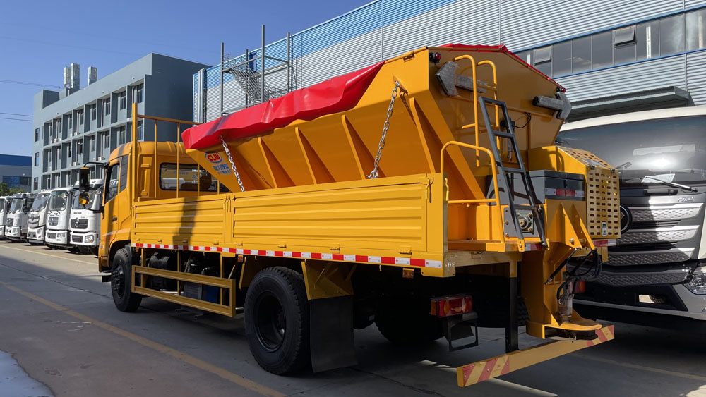 - 融雪撒布機(jī)可撒布鹽、砂、融雪劑等多種融雪物料,撒布寬度和撒布量可調(diào)節(jié)控制,計(jì)量穩(wěn)定、準(zhǔn)確、可靠,撒布寬度一般為 2-14m,撒布量為 20-300g/m² 可調(diào) 。撒布機(jī)采用碳鋼板或不銹鋼結(jié)構(gòu),具有良好的耐腐蝕性,動(dòng)力組選用國內(nèi)知名品牌發(fā)動(dòng)機(jī),性能穩(wěn)定。其采用 V 型料倉,結(jié)構(gòu)簡單可靠,使融雪劑自動(dòng)落料,出料完全,無殘留,并且上置過濾網(wǎng)可減少大顆粒或雜物進(jìn)入設(shè)備,保證機(jī)構(gòu)安全運(yùn)行,防滑輸送帶則保證了融雪劑輸送連續(xù)、均勻.