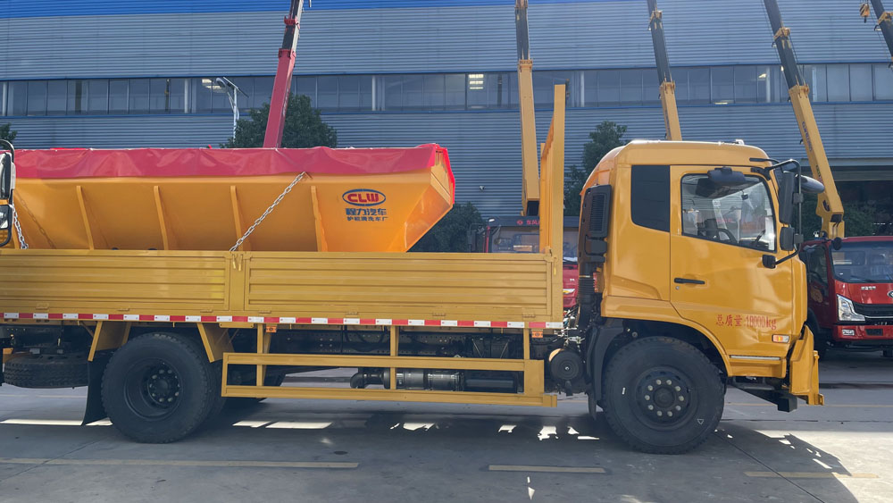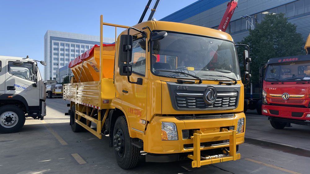 一、底盤配置: 采用東風(fēng)天錦DFH1180EX8車身,配置玉柴D6.7NS6B230發(fā)動(dòng)機(jī)169/230馬力,國六排放標(biāo)準(zhǔn),軸距4200,4500,4700,(mm),整備質(zhì)量9噸,額定載質(zhì)量8.805噸,五擋變速箱,帶動(dòng)力轉(zhuǎn)向,帶原廠空調(diào),該車用于冬季撒布融雪劑;專用裝置為撒布機(jī), 2.前伸尺寸均為160mm; 3.側(cè)防護(hù)所用材料為Q235,連接方式為焊接,后部防護(hù)所用材料為Q235,離地高度為400mm; 該車上黃牌,城區(qū)道路請注意限行標(biāo)識。