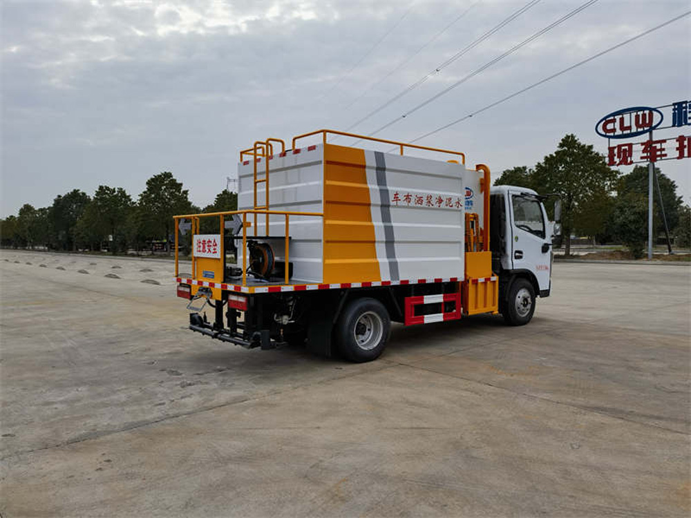 四、其他說明: 水泥罐、清水罐采用 Q235 優質碳鋼制作,高壓水泵,水泥泵(專用),攪拌系統,液壓系統,水罐到攪拌罐供 水系統(渣漿泵),15 米高壓清洗管道(帶卷盤、手持清洗槍),減速分動箱(車輛在行駛工作過程中將車速減慢 從而達到更加理想的灑布效果),尾部 14 個水泥漿專用噴頭,最大灑布寬度 4 米。標配水罐向攪拌罐供水系統,標 配提升裝置(用于袋裝水泥向罐體頂部運輸)。
